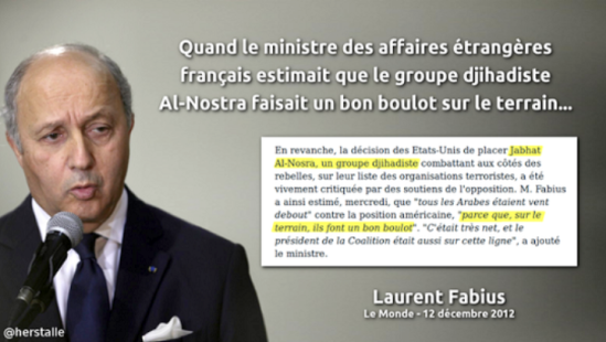 Exit M. Fabius, l’homme aux mains couvertes de sang, et pas seulement de sang contaminé par le VIH. Il fut en effet le grand artisan de la guerre livrée à la Syrie laïque sous couvert de faire bénéficier ce pays des joies immenses de la démocratie universelle. Le régime qu’appelait de ses vœux ardents le grand philanthrope Fabius est en réalité celui dans lequel les minorités - ici alaouite, chrétiennes, druze, chiite, ismaélienne - auraient été placées sous la botte des sunnites majoritaires, de facto sous la coupe des Frères musulmans, ces islamistes protégés, parrainés, armés par la Turquie - plus discrètement aussi par l’État hébreu dans le Golan - avec la bénédiction de cette grande amie des migrants qu’est Mme Merkel, ex agent de la Stasi dit-on, à la façon de l’ancien président polonais Lech Walesa. On sait par ailleurs comment Ankara traite ses propres minorités kurde… et alévie le jour où celle-ci se manifestera. La question des chrétiens est elle définitivement réglée, plusieurs millions d’entre eux, Arméniens, Syriaques, Chaldéens, Grecs orthodoxes ont été passés au fil de l’épée et les plus chanceux expulsés, si bien que la Turquie actuelle peut respirer librement en n’en comptant guère plus que deux cent mille.