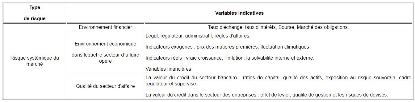 D’après l’auteur, le risque systémique de la contrepartie relève du chapitre du risque pays car les analyses nécessaires à son identification s’intègre dans les dimensions économiques, financières et politiques, c’est à dire des variables de même nature que celles qui concernent les risques de défaut et de marché.