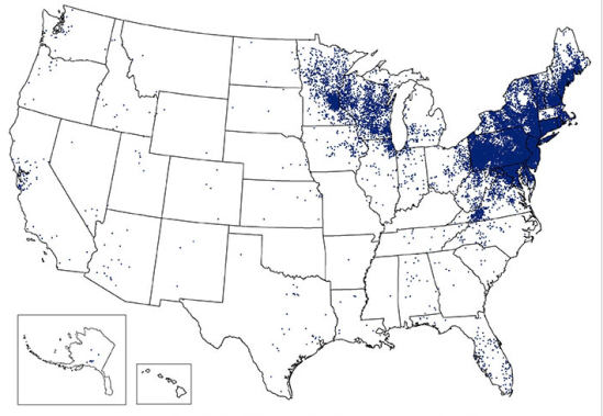 Répartition de la maladie de Lyme aux États-Unis, en 2017
