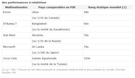 Exxon, Coca-Cola, Microsoft et consorts aligneraient une puissance économique supérieure à celle des Etats. Dans la mythologie altermondialiste, cette idée occupe une place de choix.