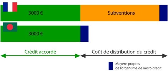 Ayant par hasard reçu pour 2005 les comptes de l’ADIE (Association pour le droit à l’Initiative Économique), l’organisme le plus représentatif du micro-crédit en France, quelle ne fut pas notre extrême surprise de découvrir que les prêts distribués par l’ADIE, environ 15 millions – même pas distribués par elle mais encouragés par elle car ce sont en fait les banques qui prêtent - représentaient 16,5 millions de dépenses de fonctionnement, dont 9,5 millions de dépenses de personnel, presque entièrement couverts par des subventions publiques, essentiellement via la Caisse des Dépôts.