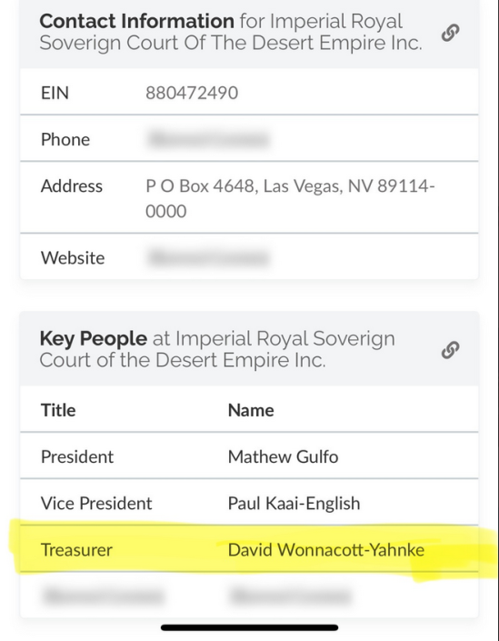 David Wonnacott-Yahnke était résorier de la Cour impériale royale souveraine du désert.