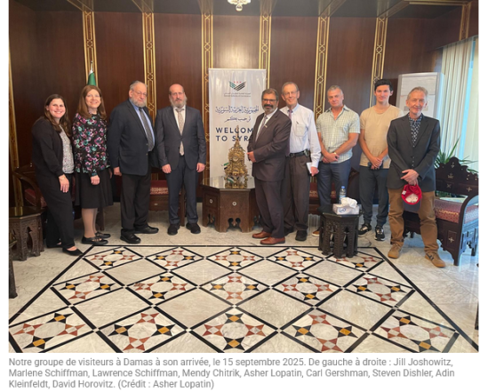 Le groupe a rencontré plusieurs ministres et responsables gouvernementaux. Il s’est rendu sur plusieurs sites juifs et il a pu exceptionnellement accéder aux fresques de Doura-Europos qui se trouvent au Musée national de Damas – il s’agit de la plus ancienne série de peintures figuratives au monde représentant des événements de l’Ancien Testament.