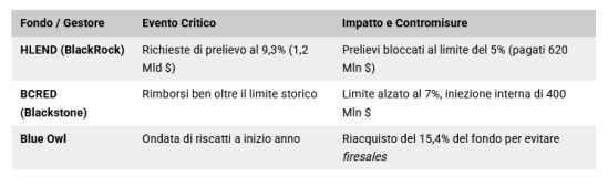 Lorsque trop d’investisseurs réclament leur argent en même temps, on assiste à ce que BlackRock a elle-même qualifié de « déséquilibre structurel » entre le capital des investisseurs et la durée prévue des prêts. Sans la mise en place de ces barrières (appelées « gates »), les fonds seraient contraints de brader leurs actifs (firesales), ce qui ferait chuter les prix et anéantirait les rendements pour les investisseurs restants.