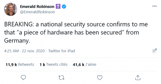 - Donald J. Trump (@realDonaldTrump) 13 novembre 2020