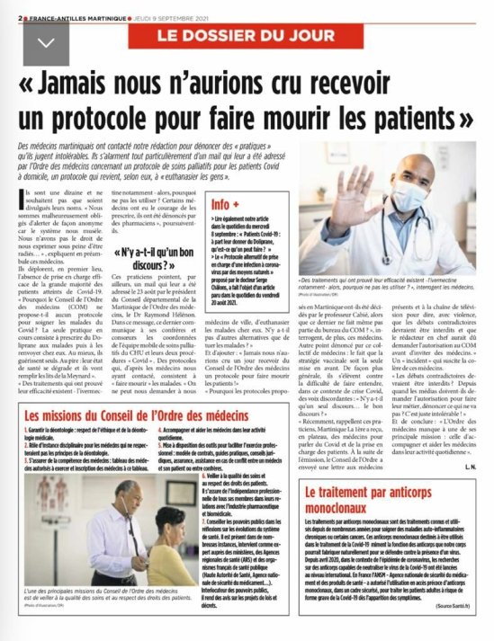 La seule pratique en cours consiste à prescrire du Doliprane aux malades puis à les renvoyer chez eux. A mieux ils guérissent seuls. Au pire : leur état de santé se dégrade et ils vont remplir les lits de la Meynard« . »Des traitements qui ont prouvé leur efficacité existent : l’Ivermectine notamment, alors pourquoi ne pas les utiliser.