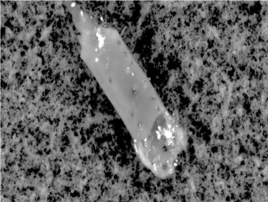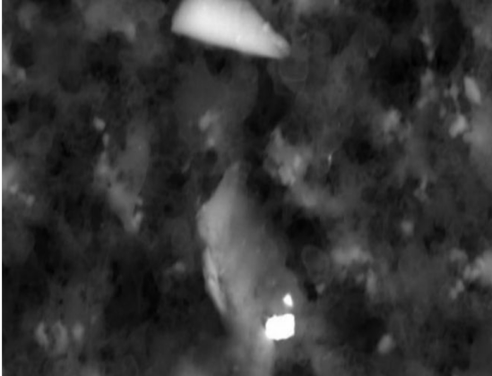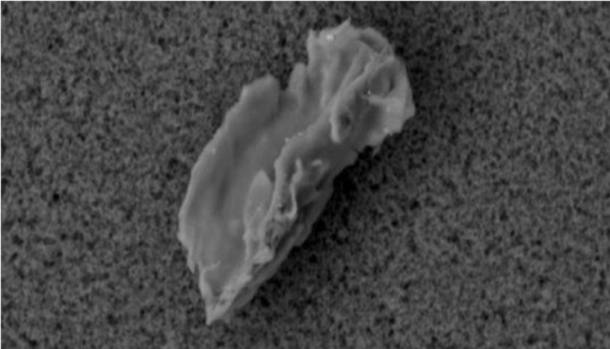 L’image ci-dessus révèle la présence de nanoparticules cytotoxiques intégrées. Les micro et nano particules observées sont de nature chimique. De nombreux corps étrangers ont été identifiés avec une morphologie sphérique avec quelques cavités en forme de bulles.