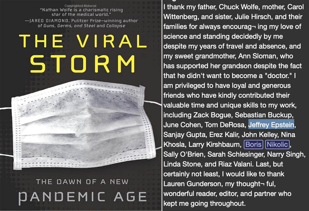 Wolfe a aussi écrit un livre « La tempête virale : L’aube d’une nouvelle ère pandémique » en 2011 dans lequel il remercie ses amis dont