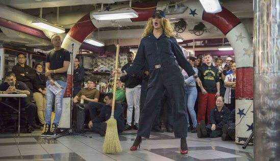 Kelley, qui a été nommée reine du concours de Miss Gay Harrisburg en 2015′, continue de trouver de la joie en se produisant en drag et en tant que marin à bord du Reagan. Et malgré les différences entre les professions d’un point de vue extérieur, il dit que son dévouement au spectacle n’a fait qu’aider son efficacité en tant que marin.
