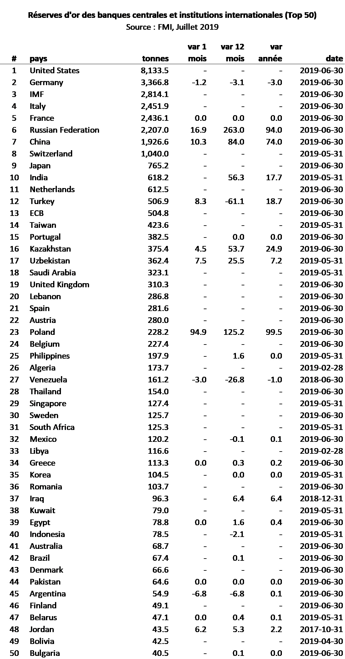 [1] : Basé sur les données du FMI complétées par les données des banques centrales respectives lorsqu’elles sont disponibles et non communiquées par le FMI au moment de la publication. Les chiffres peuvent être révisés dans notre prochaine mise à jour mensuelle si des données supplémentaires sont disponibles.