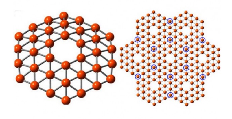 Ils ont notamment fait appel à un superordinateur qui a passé en revue 3 000 structures possibles. Cela leur a permis d’en isoler une. Il s’agit d’un arrangement symétrique de 36 atomes de bore épais d’un atome au centre duquel se trouve un trou en forme d’hexagone.