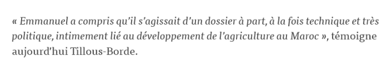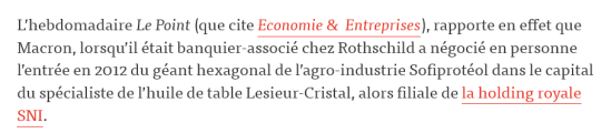 Le président de la République a été la « guest-star » surprise de la soirée d’anniversaire qu’organisait le 30 mai 2023 à Paris le groupe agro-industriel Avril, pour ses 40 ans. Dans une vidéo qui a clôturé la partie officielle, Emmanuel Macron a affiché à plusieurs reprises sa proximité avec l’entreprise et ses dirigeants. Une proximité qui date des années où il était banquier d’affaires chez Rothschild. Il a ainsi rendu un hommage long et appuyé à Philippe Tillous-Borde, « qui fut mon ami », ancien dirigeant à l’origine de la création de l’entreprise en 1983, décédé en décembre dernier, déclarant avoir aussi une pensée pour « Yves, Stéphane, Michel et beaucoup d’autres », des cadres qui ont accompagné l’ancien directeur général dans cette aventure. « Il se trouve que tout au long de ma vie professionnelle, je n’ai jamais été loin de Sofiprotéol (NDLR précédent nom du groupe jusqu’en 2015) puis d’Avril dans des phases diverses, dans des conditions diverses. Je serai toujours là dans l’avenir », a-t-il promis.
