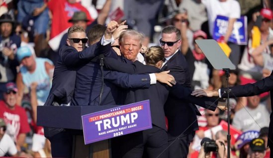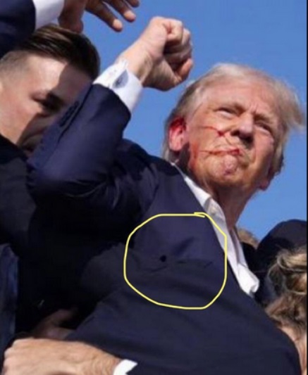 Trump a été touché à l"oreille et au corps, et il semble que son gilet pare balle a évité le pire comme on peut le constater sur cette photo.